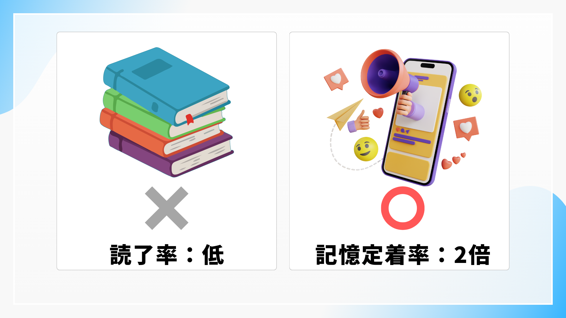 テキストのみの資料に比べ、動画は情報の伝達力が5,000倍とも言われています。