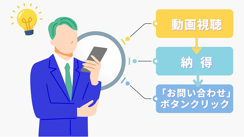 さらに、その動画を起点に、お問い合わせへと導く最適な導線設計から、成約率を最大化する専用LPの構築までをワンストップで実現するプラットフォームです。